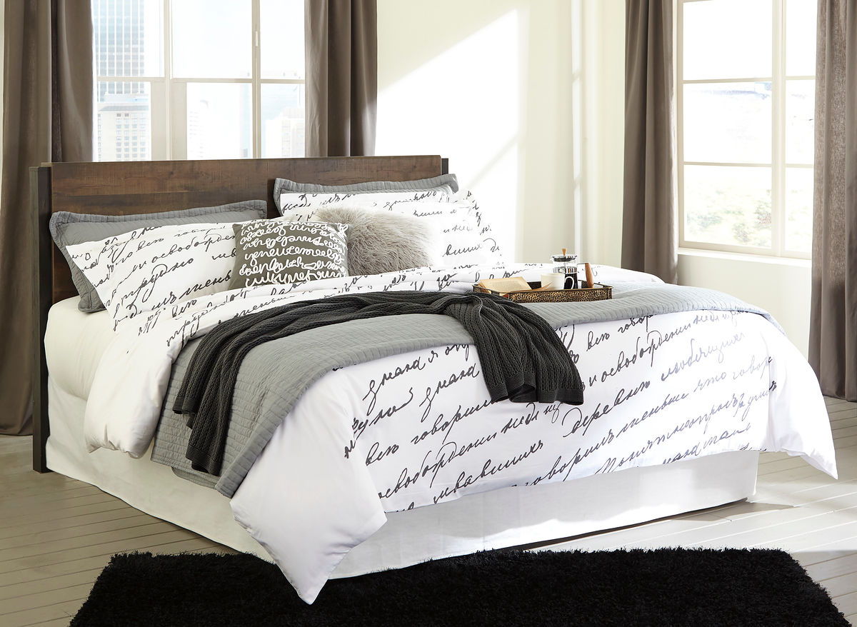 Less. Never more beautiful. Rich on the rustic character and decidedly simple on the details, this headboard maximizes the beauty of minimalism. Its richly rustic oak grain character is enhanced with a two-tone finish that gives the plank-style aesthetic a highly modern feel. Mattress, bed frame and foundation/box spring sold separately.