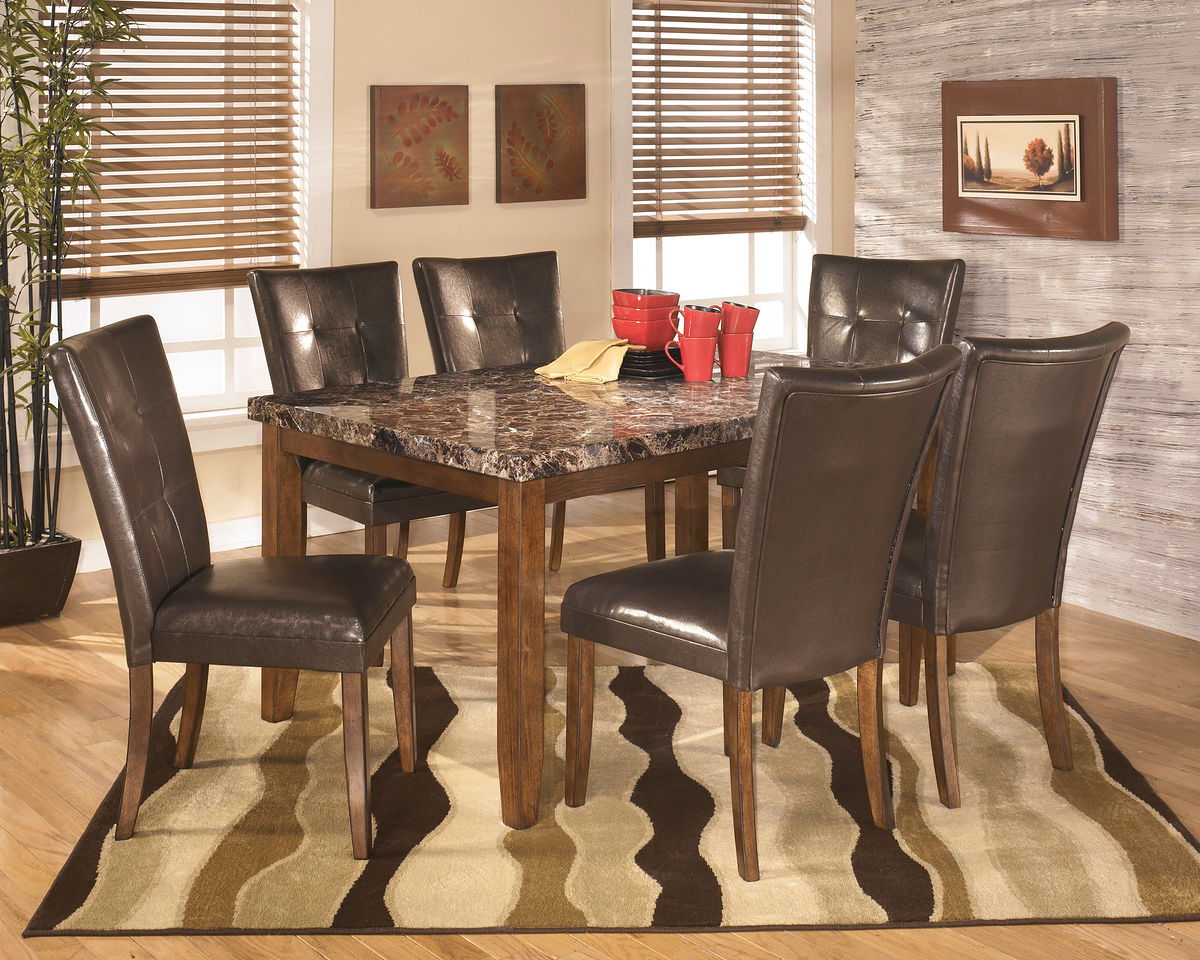 It's time to add an aura of richness and elegance to your dining room arrangement. That's where this striking dining room table comes in. Its chunky base design is paired with a thick faux marble top for the ultimate dining experience. Now your only worry is what to serve for dinner.