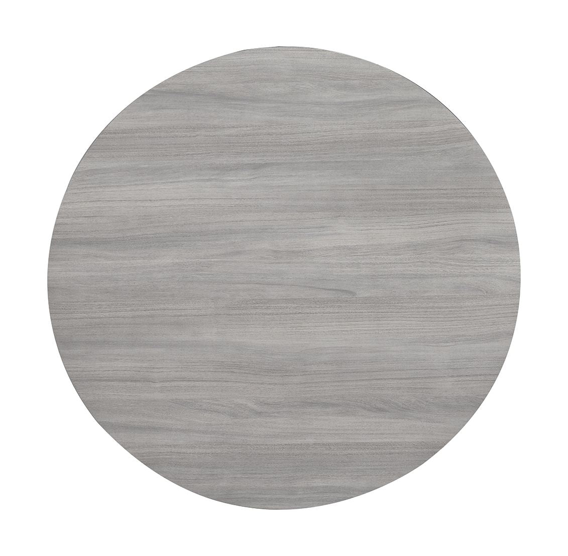 Looking to bring high style to a tight space? This round, counter-height dining table serves your needs beautifully, with a dash of industrial flair. Contrasting finishes elevate the classic shape, creating a look that keeps you coming back for seconds. Sporting the look of weathered barn wood, the top is crafted of durable melamine allowing it to weather years of family thrills and spills.