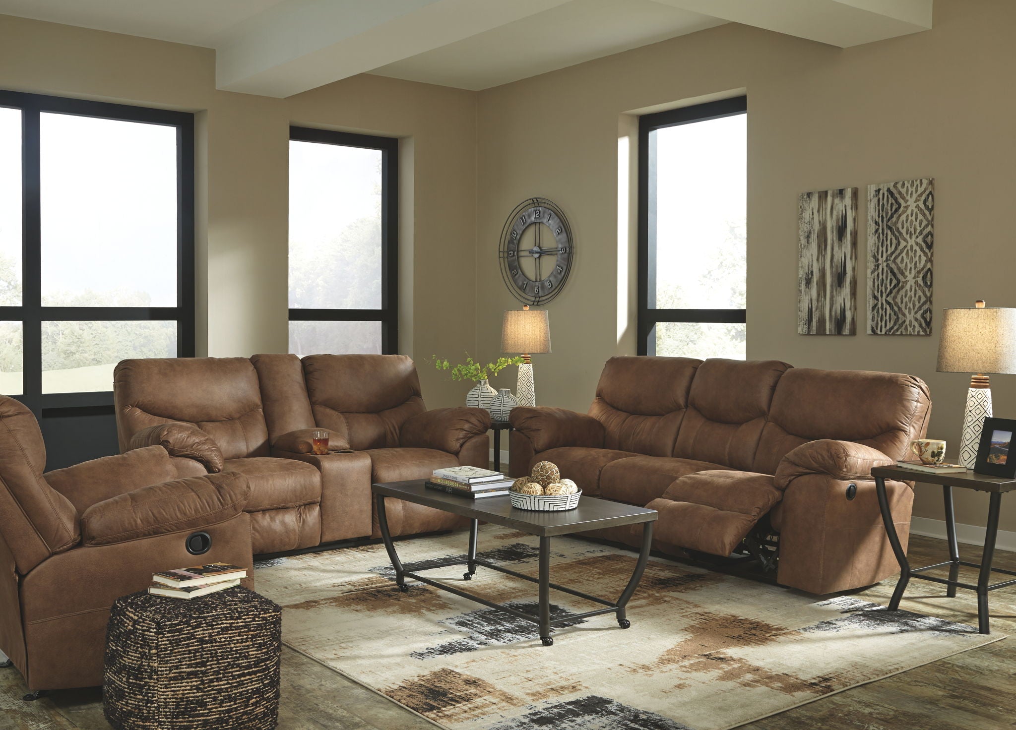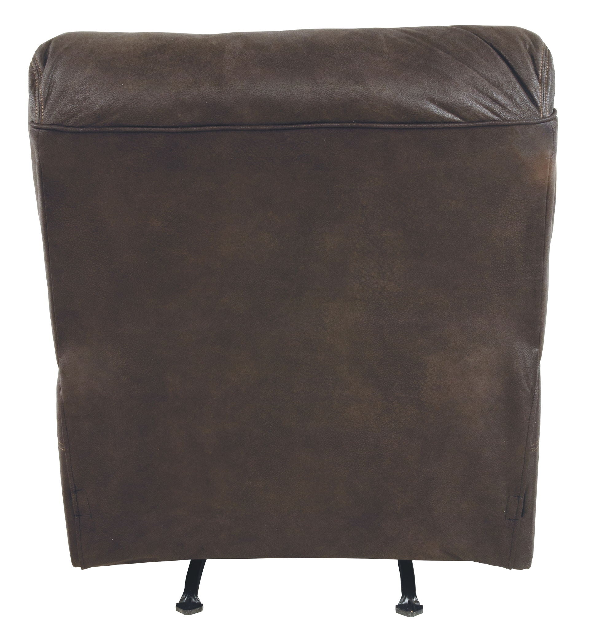 Rock the cool look of leather minus the hefty price tag with this rocker recliner. Rich with tonal variation, the indulgently soft upholstery sure looks like the real thing. And talk about indulgent comfort. Double stuffed armrests and sumptuous cushions cradle and support in all the right places. The recliner’s distinctive scooped stitching adds contemporary flair.