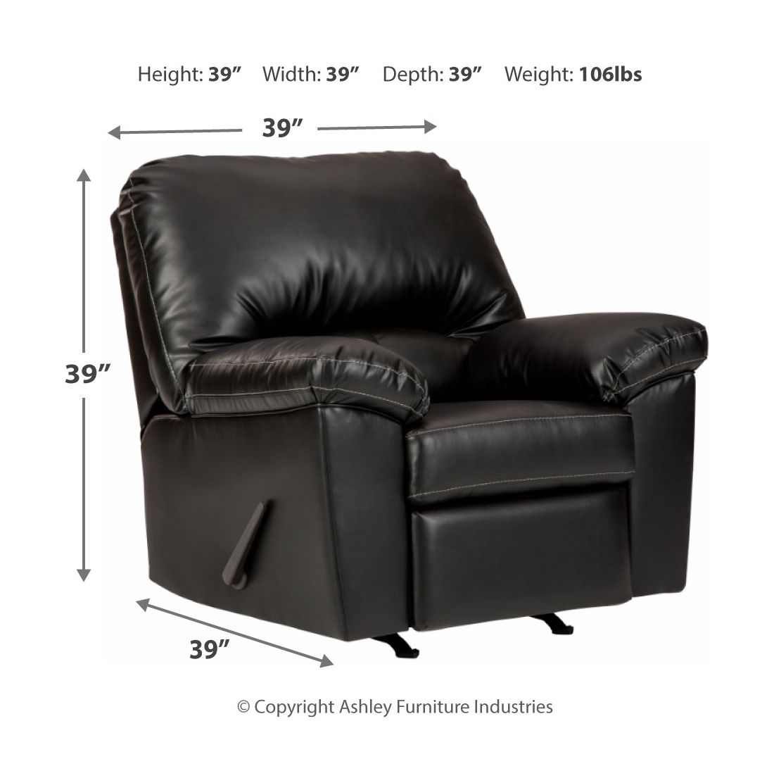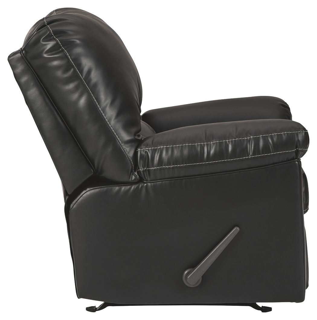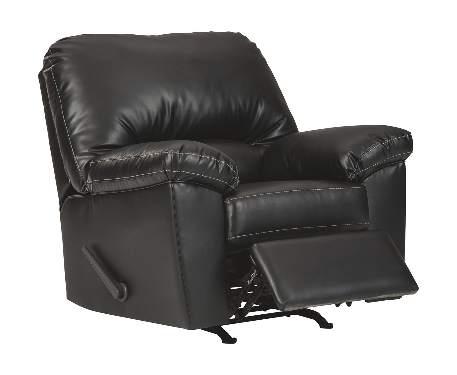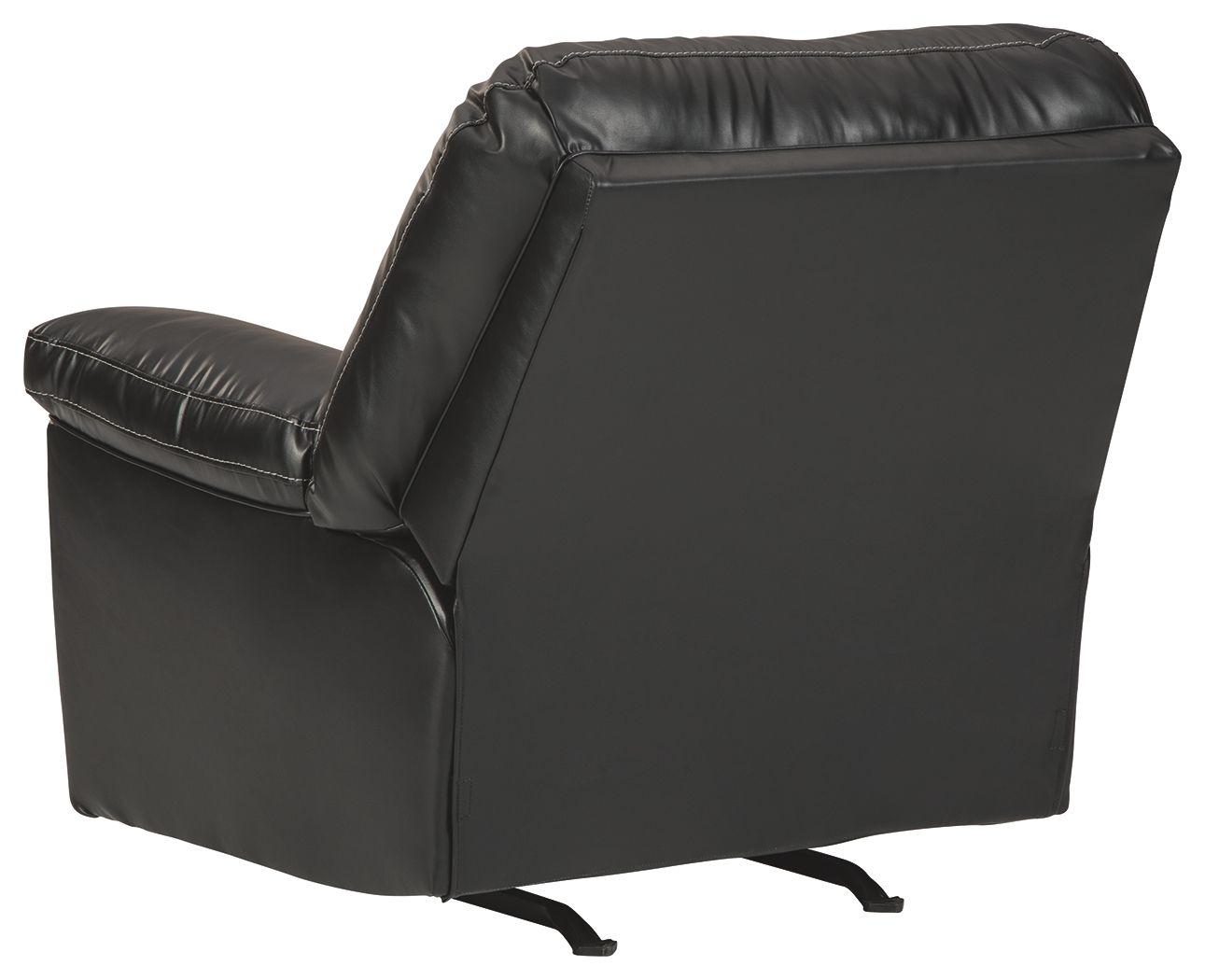 Indulge your lust for comfort and love for contemporary design with this rocker recliner. Made for easy, everyday living, it’s upholstered in a heavyweight padded faux leather, accented with contrast jumbo stitching for fashion-forward flair. Divided back design puts pillow plushness and support right where it’s needed most. Overstuffed pillow top armrests are the stuff dreams are made of.