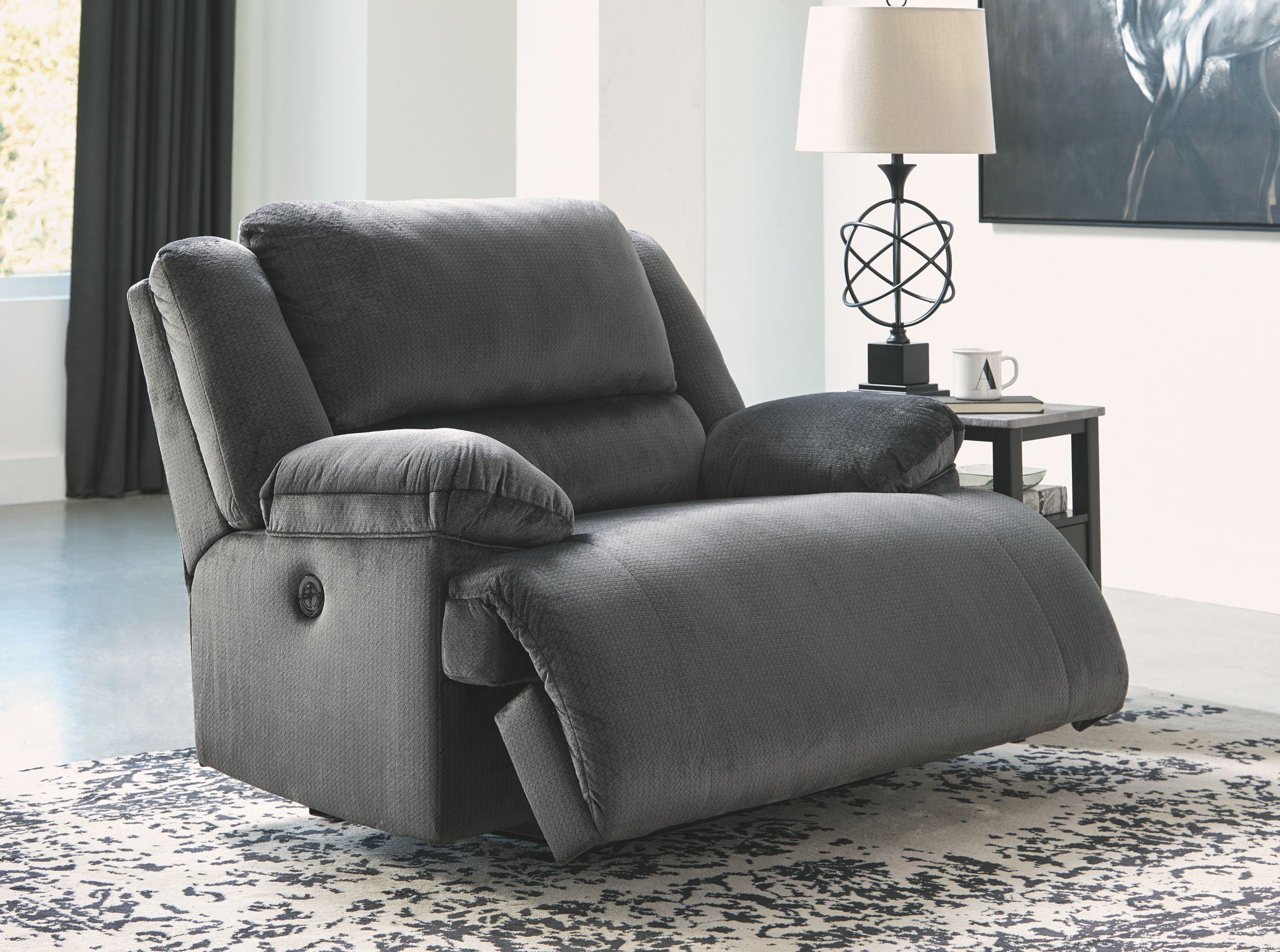 Large-scale comfort is yours with this zero wall wide seat power recliner. With supremely padded back, seat and arm cushions, it's the hero for ultimate relaxation. Microfiber upholstery is welcoming, soft and luxuriously covers the extra-wide seat. Recline back and kick up your feet to bolster your comfort level even more.