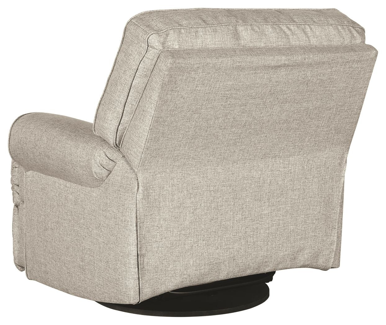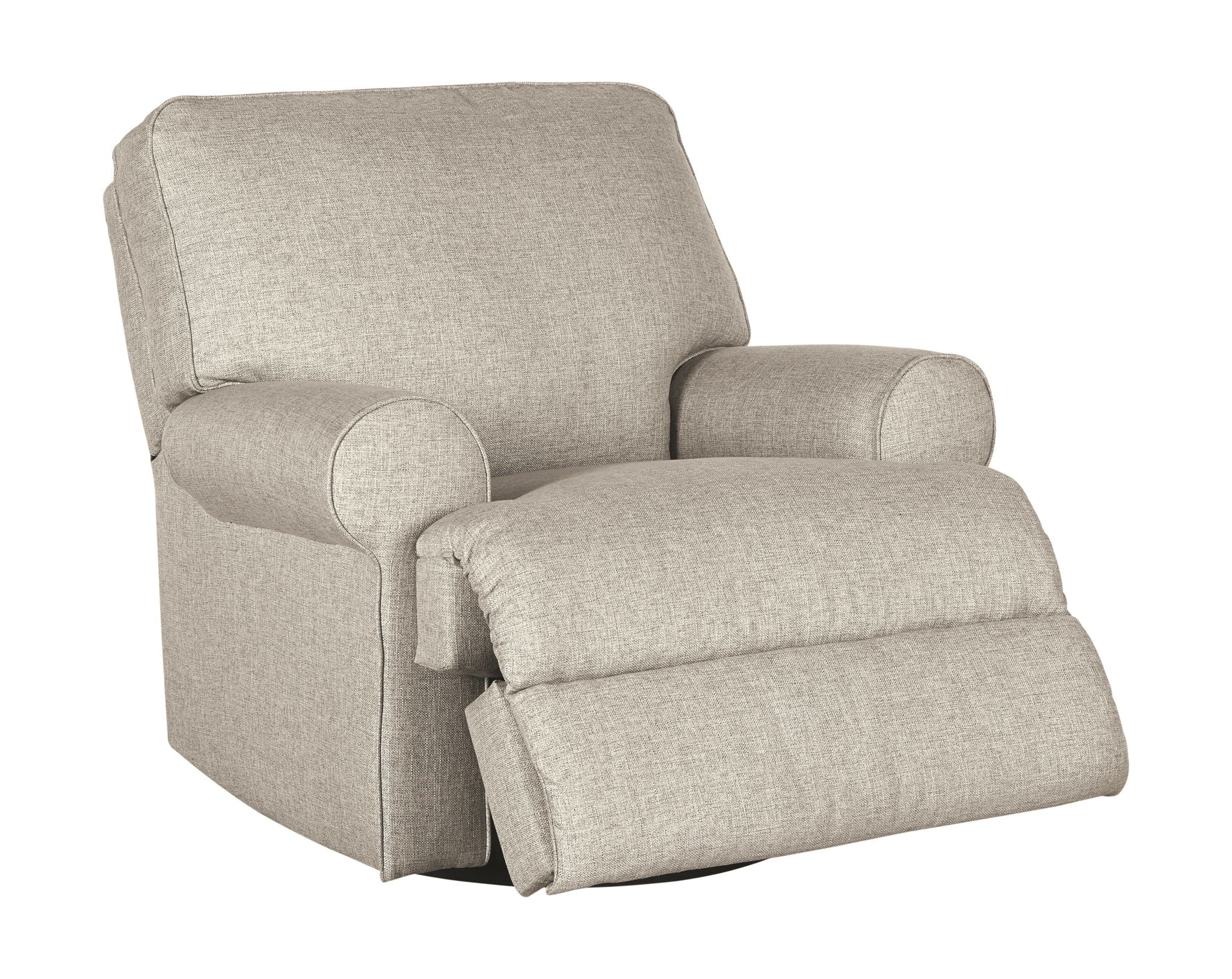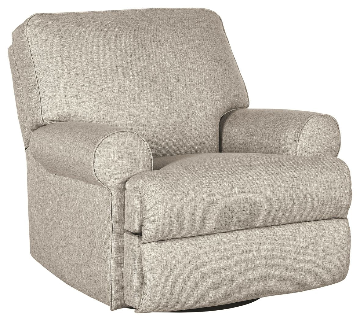 Enticing with a 360-degree swivel, easy recline function and gentle rocking motion, this recliner aims to please in so many ways. This high-style chair not only rocks in the nursery, but it also works anywhere and everywhere comfort and style rule. Rest assured, its richly neutral and transitional good looks seamlessly blend with so many decor styles. Thanks to an EZ control tucked discreetly inside the armrest, while this chair may be a recliner, it sure doesn’t look like one.