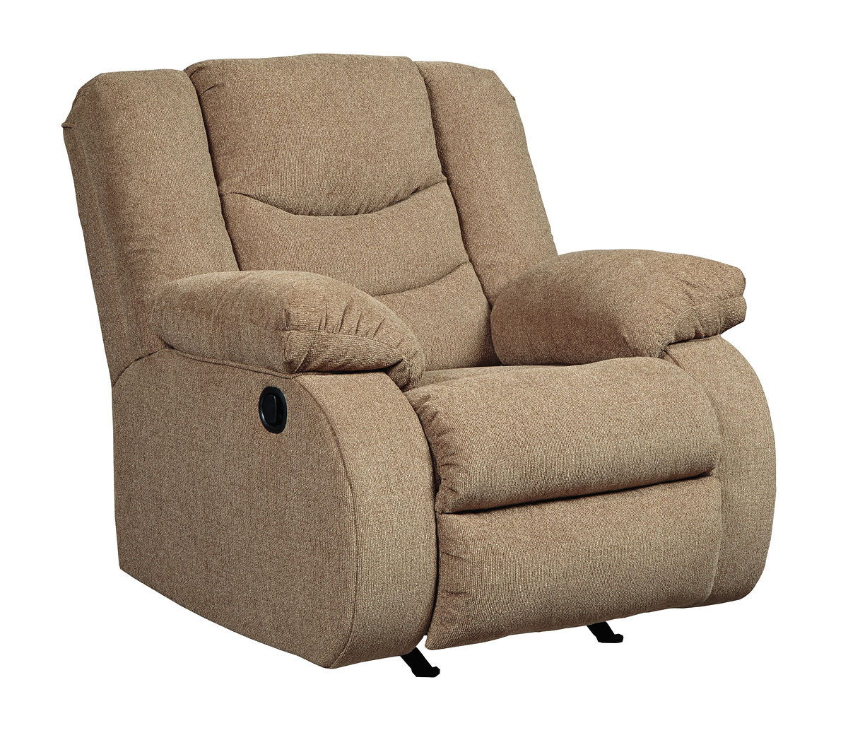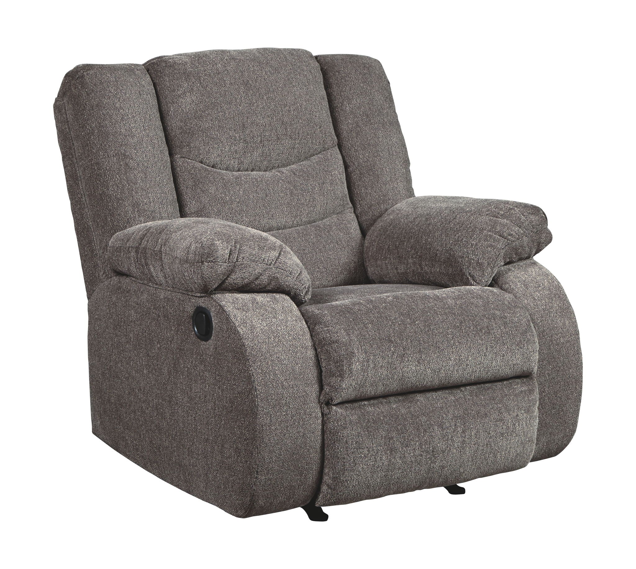 This rocker recliner puts the win in winning. Its waterfall back design and doubly plump pillow top arms team up with soft chenille fabric to go for the goal. Ample seating room makes the comfort possibilities endless. Sit back and relax. You won’t go wrong with this recliner.