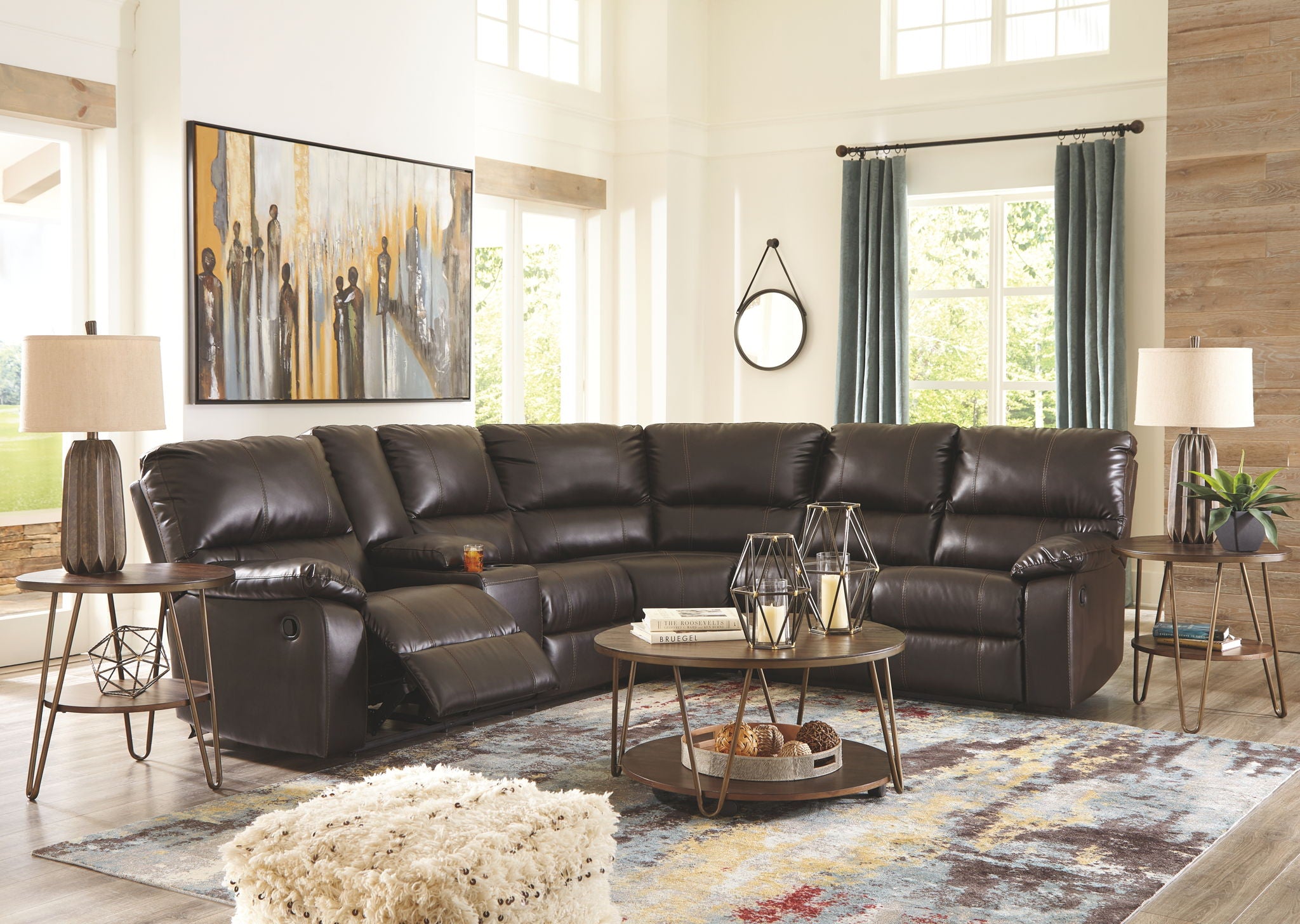 Put your home on the map for comfortability with this 3-piece reclining sectional. Crafted of the latest faux leather fabric for style and durability. Plush cushions make this a number one choice for relaxation. Friends and family will love using the cup holders when it’s time for a get-together. All that’s left for you to do is kick up your feet and have some fun (or a few snoozes).