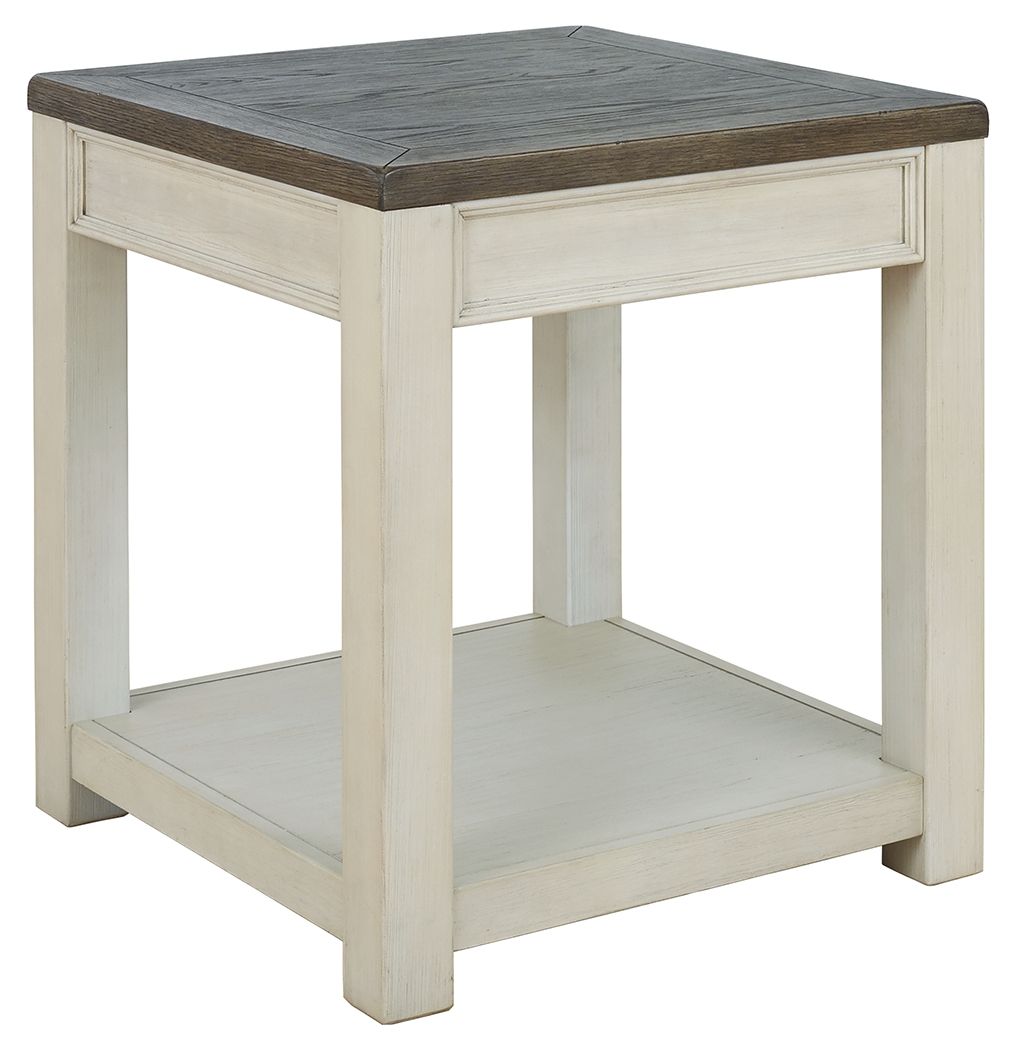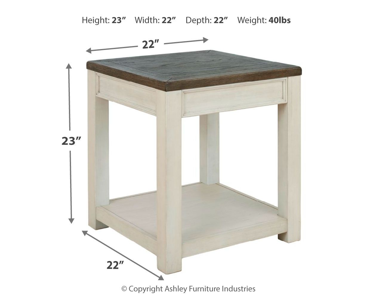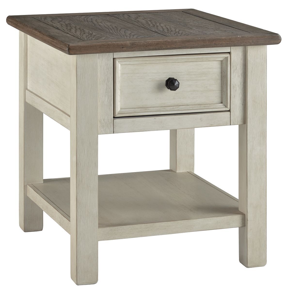 Enjoy beautiful cottage style in this classic end table. Sporting a plank-effect top and a textured two-tone finish, this end table blends timeworn character with modern functionality. A spacious lower shelf lends dimension to the design.