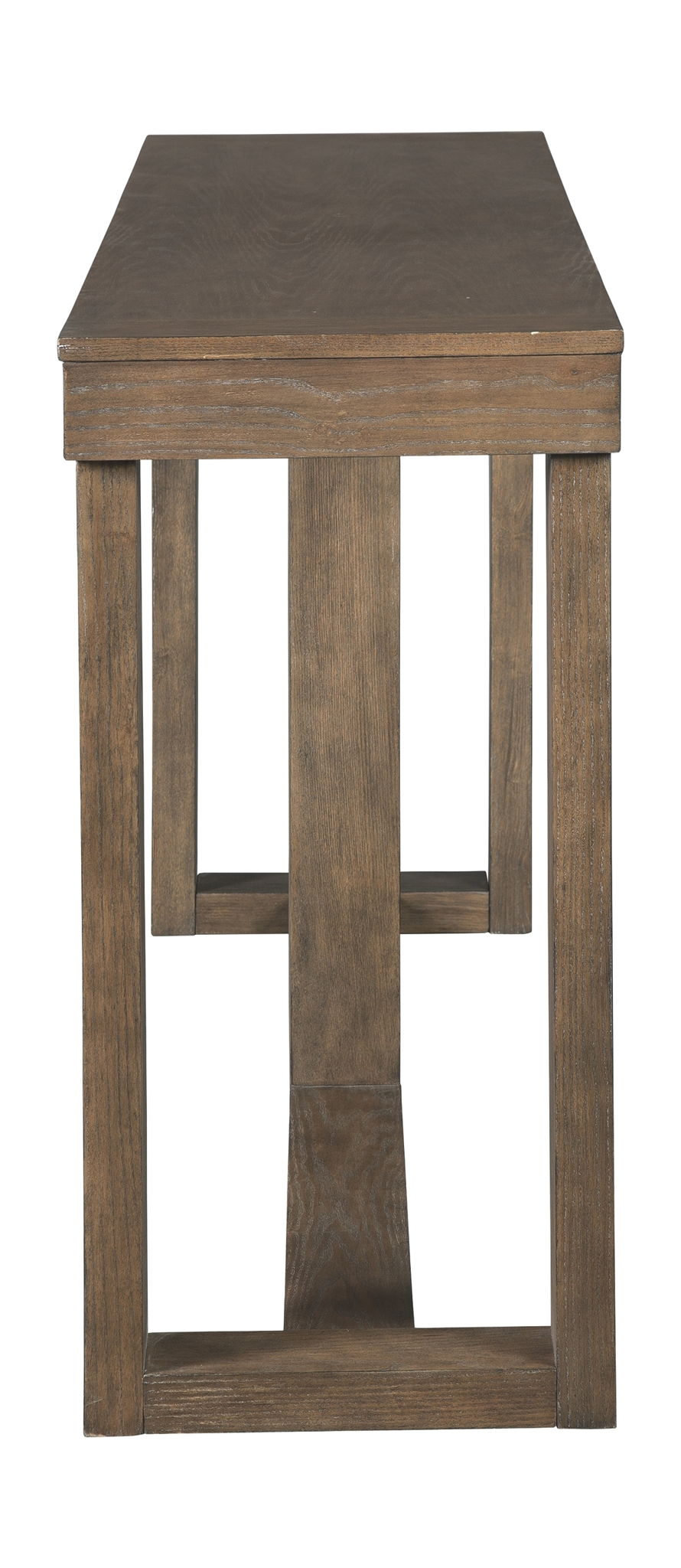 This designer sofa table masters the art of simplicity. Bold, blocky profile is enriched with plank-effect styling and a textured grayish brown finish for a look that’s cool and contemporary and a vibe that’s warm and inviting.