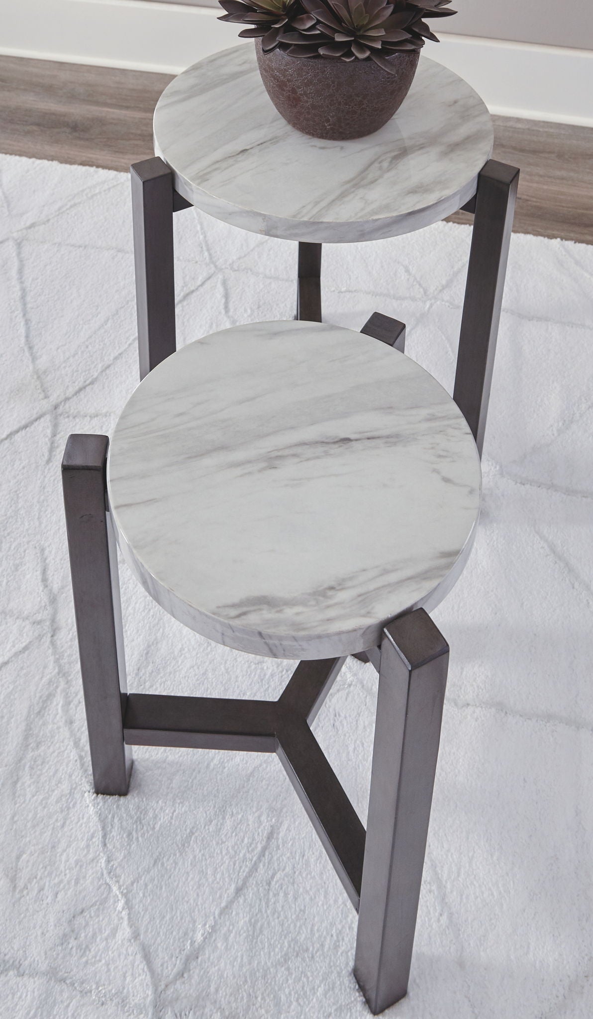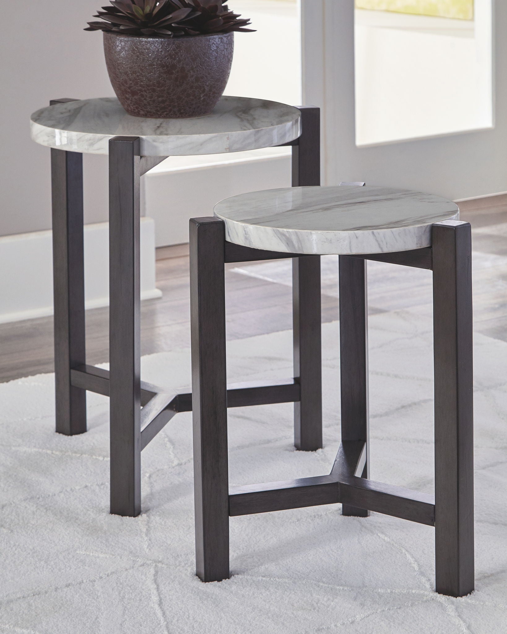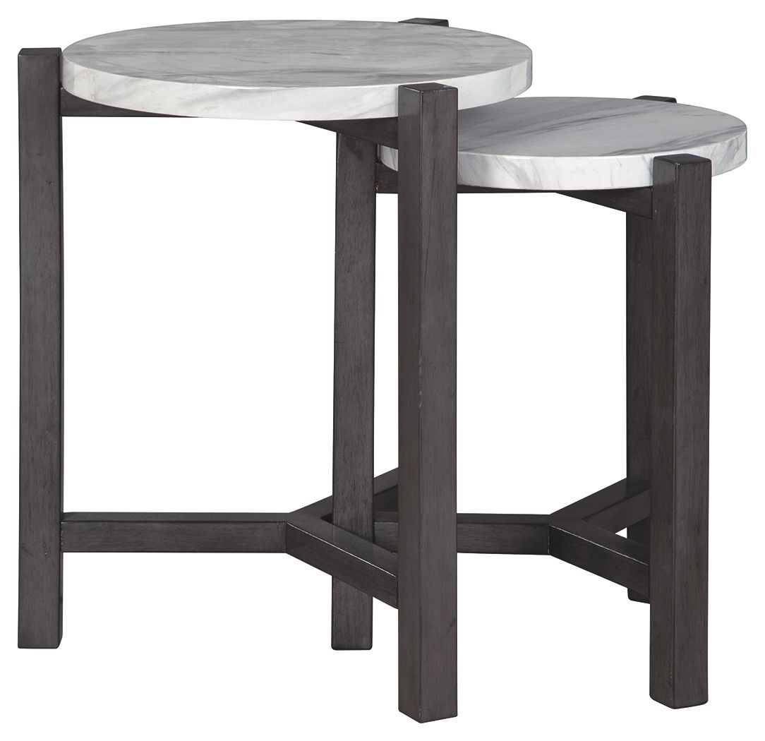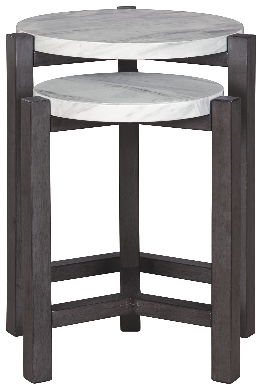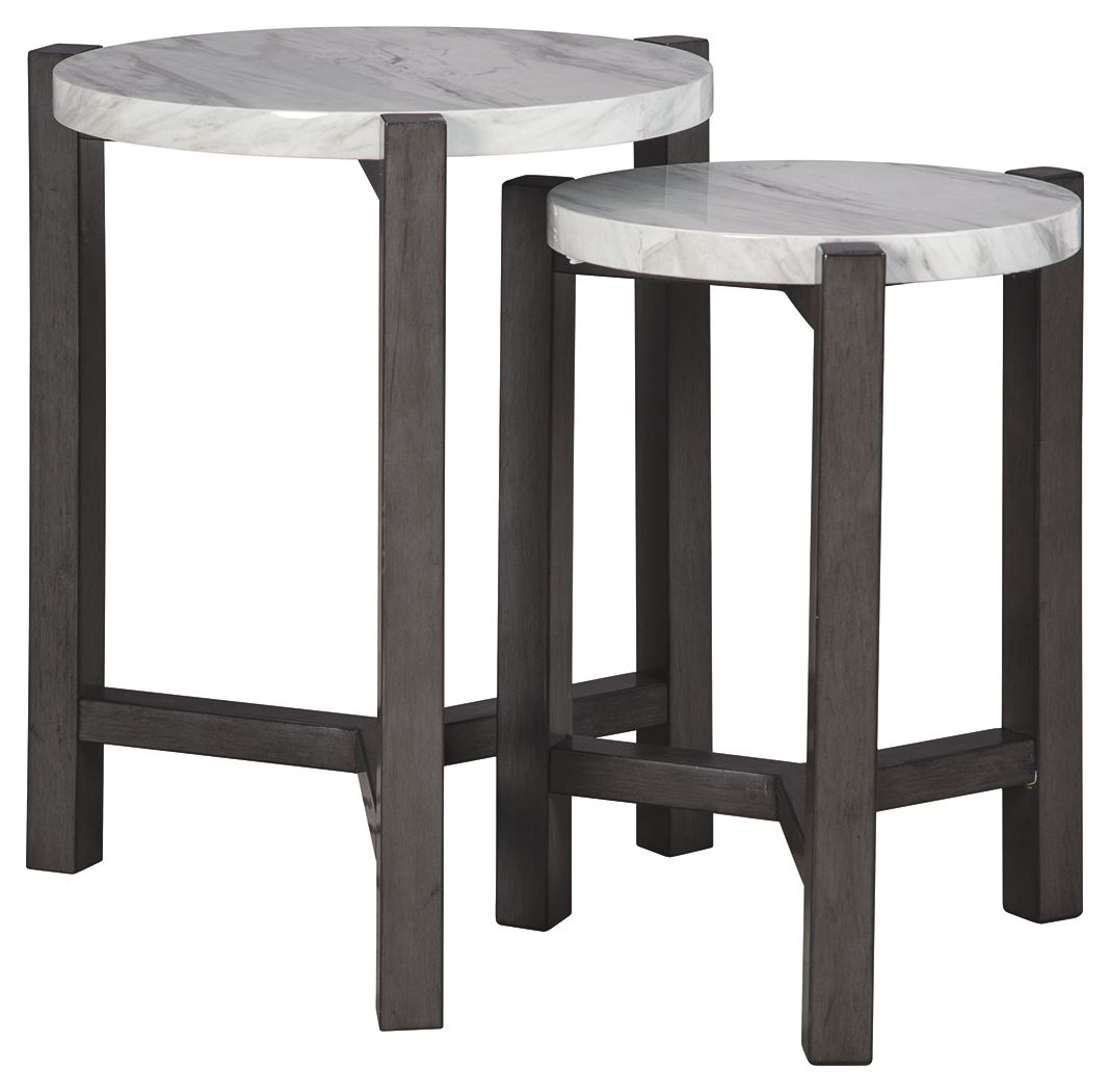 Perfect for accommodating tight spaces, this nesting table set makes a big statement in a small footprint. Faux marble tops add a sense of luxury. Round styling beautifully goes with the flow.