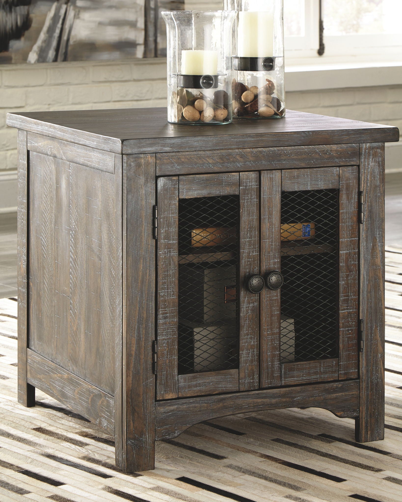 This end table is so much better for the wear. Its clean, straightforward profile is enriched with solid pine wood treated to a complex finish melding gray and brown hues. Cabinet doors with wire mesh front infuse a farmhouse fresh element that’s right on trend. Talk about loaded with charm and packed with possibilities.