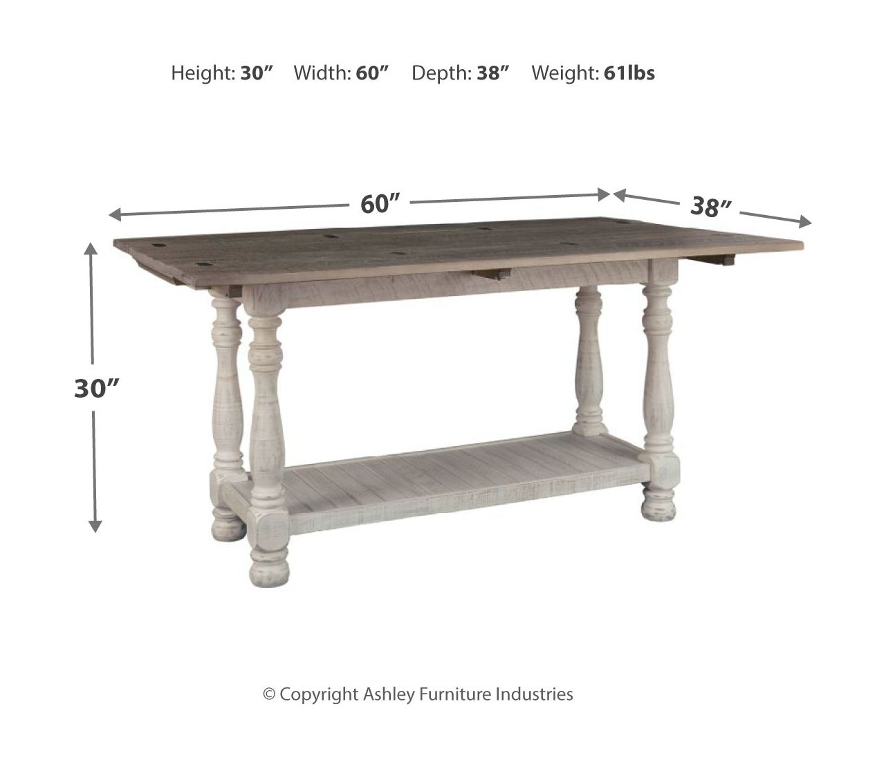 With its richly rustic finish and textural mix, this flip top sofa table goes to town on bygone beauty. Distressed two-tone treatment blends a weathered gray with vintage white for an utterly charming effect. Expecting company? Simply open the flip top panels to instantly create additional dining space.