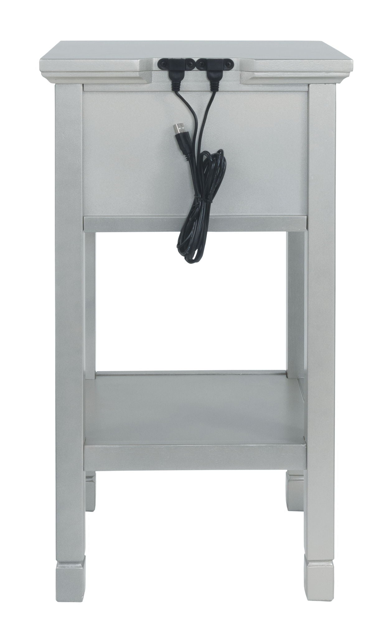 Your home called. It asked for this accent table. Crisp white finish is simply irresistible, elevating the silhouette with elegance. Clean lines maintain the contemporary aesthetic you crave. Open cubby and bottom shelf provide storage for essentials and decor. Power up your devices with USB ports. How’s that for form and function?