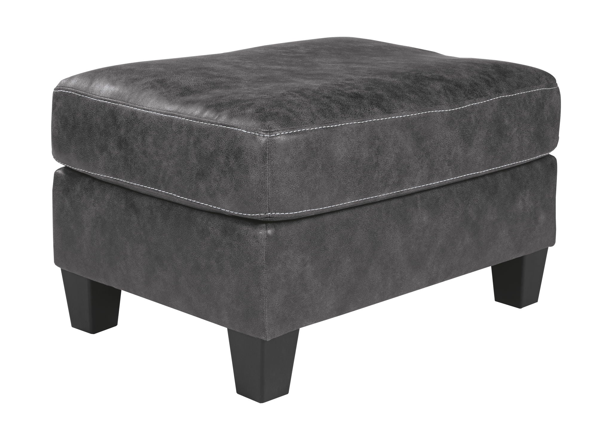 This ultra-contemporary ottoman invites you to kick back and make yourself comfortable. Gunmetal gray faux leather offers the cool, weathered look you love and touchably soft feel you crave.